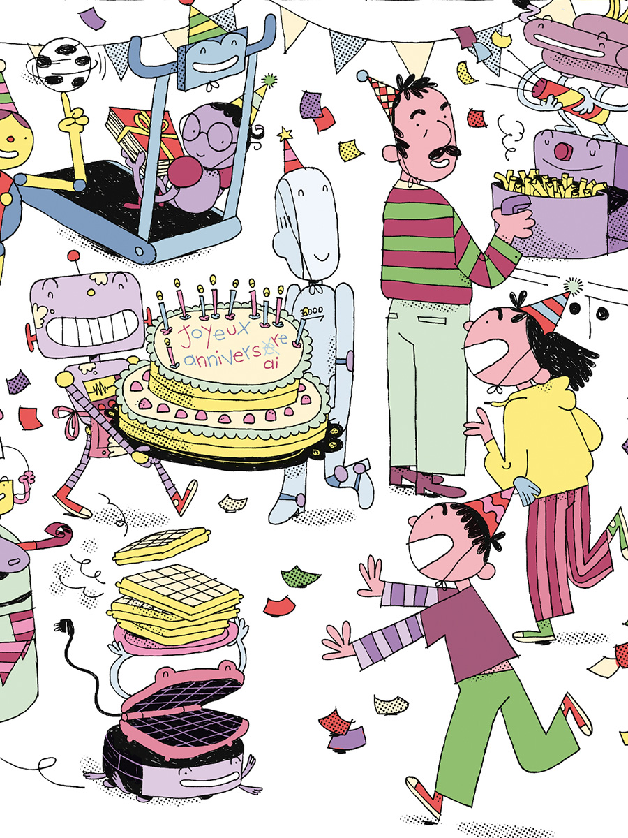 Je voulais parler du quotidien avec les robots, partir sur une histoire de robots ménagers avec une touche d’écologie et de lutte des classes. Je voulais qu’il y ait une morale qui aille dans ce sens, mais je crois que ça a un peu dérivé…