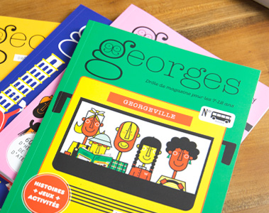 Pour ceux qui l’ignorent encore, Georges est un magazine jeunesse différent qui paraît tous les 2 mois. 100% illustré et sans publicité, Georges est destiné aux jeunes lecteurs et lectrices de 7 à 12 ans qui veulent apprendre en s’amusant. Intelligent et très varié, chaque numéro aborde un thème avec originalité et humour, encourage la curiosité et la créativité et offre aux enfants des heures de loisirs.