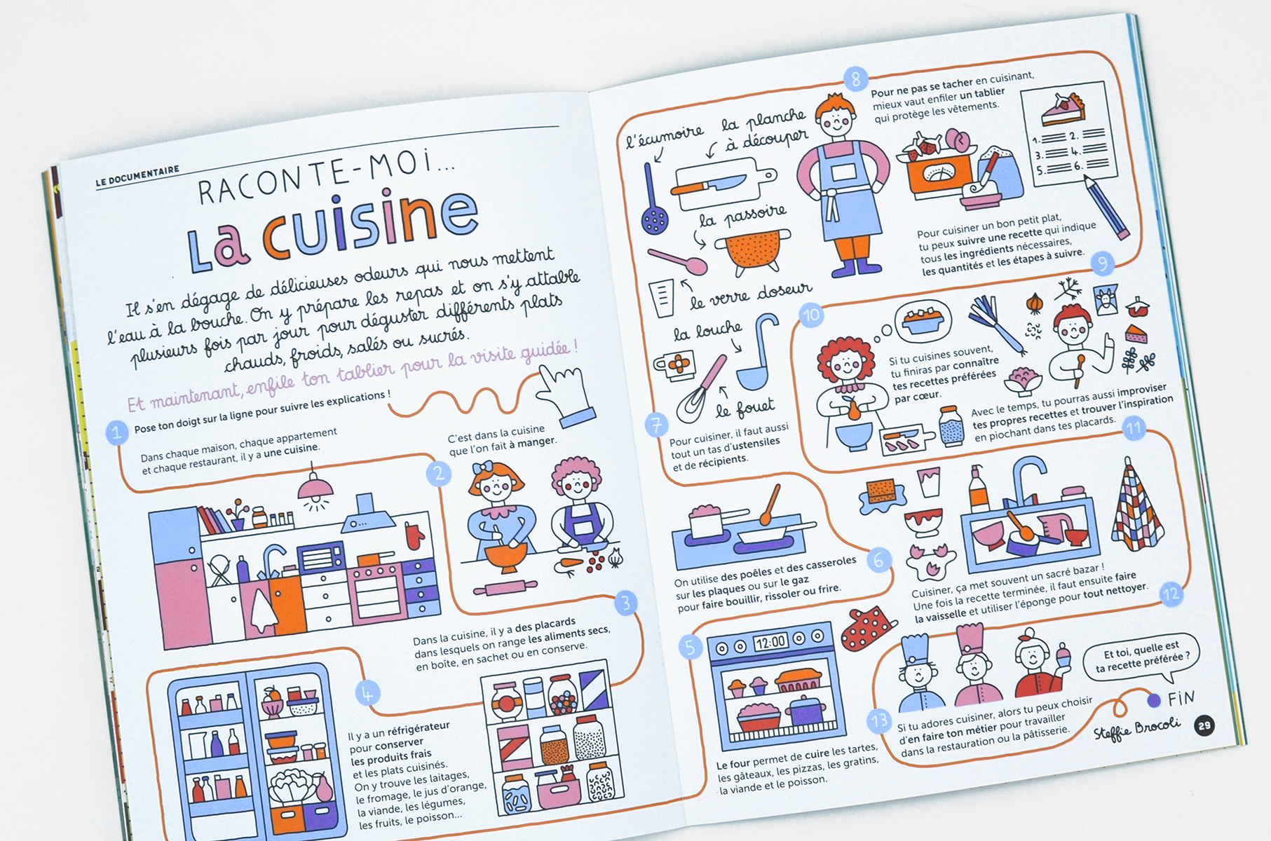- Dans le documentaire à suivre avec le doigt, on déambule dans la cuisine pour découvrir tous ses secrets et apprendre son vocabulaire spécifique, avec légèreté.