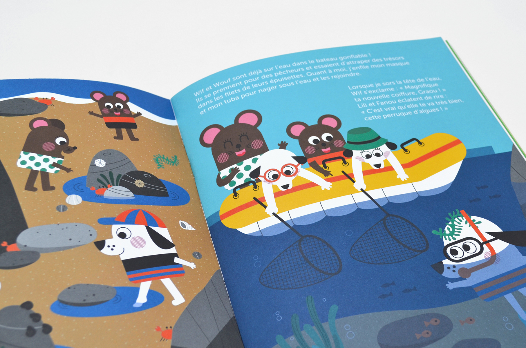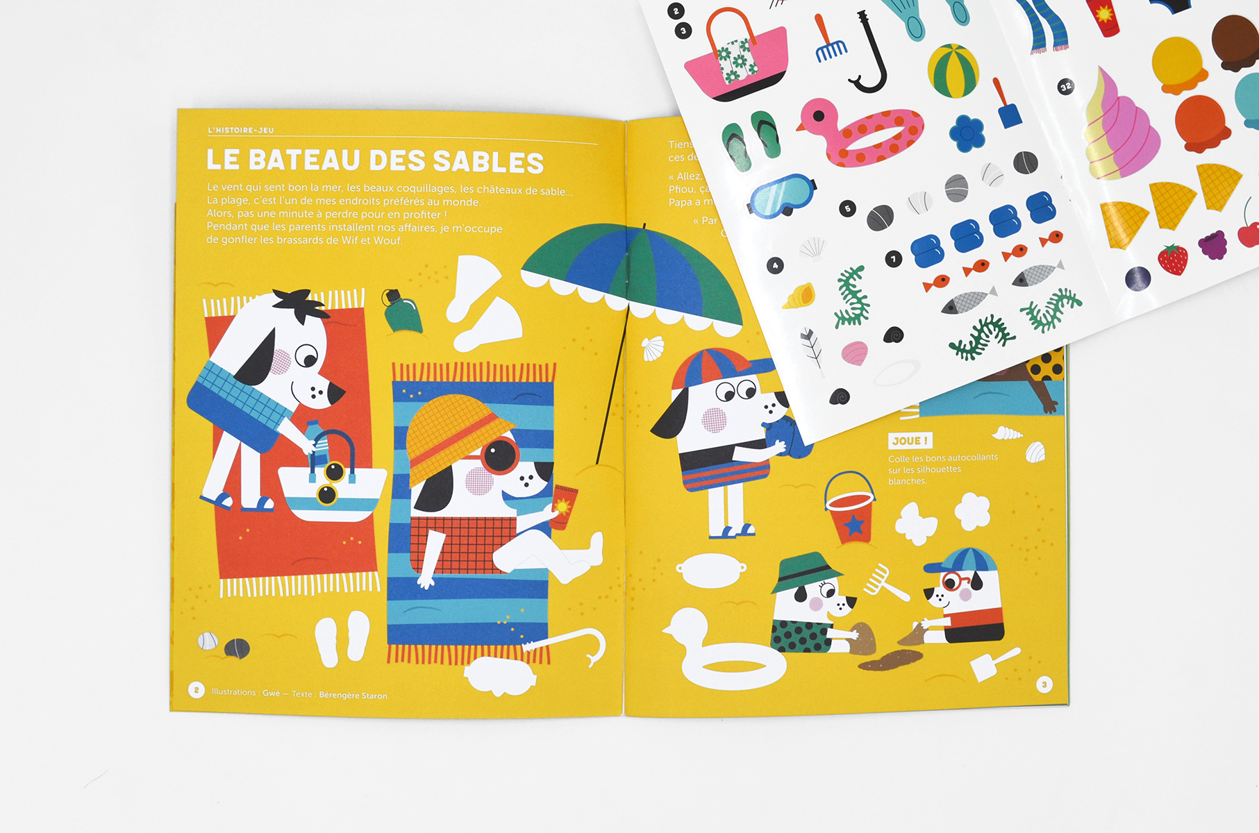 - Dans lâhistoire-jeu, Graou part Ă la plage avec sa famille. Gonflage des brassards, installation des serviettes, application de la crĂšme solaire et la construction du bateau de sable peut enfin commencer. DĂ©couverte des crabes, balade en bateau gonflable, quelques brasses dans lâeau transparente, une pĂȘche Ă lâĂ©puisette ⊠on ne sâennuie pas Ă la plage ! Toujours en bonus : la partie jeux pour complĂ©ter lâhistoire en sâamusant avec les autocollants.Â