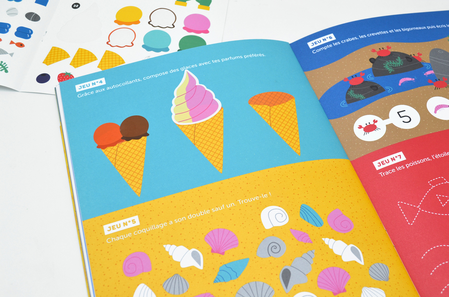 - Enfin, direction les pages de mini-jeux entre coquillages et crustacés : le jeu des 7 différences, la reconnaissance de formes, des cherche et trouve, des traçages et bien plus encore !