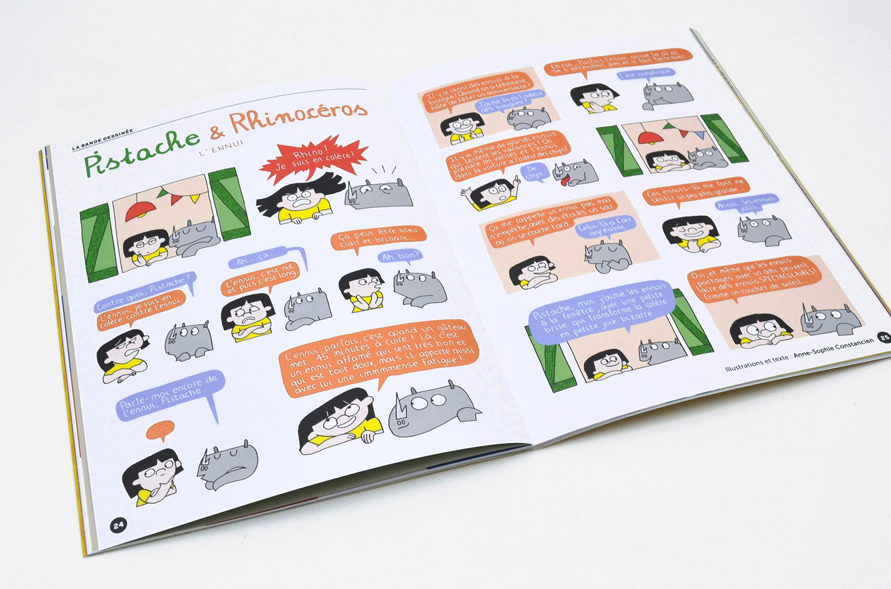 - Dans la nouvelle BD de Pistache et Rhino dâAnne-Sophie Constancien, nos deux compĂšres dĂ©battent sur lâennui pour essayer de lâapprivoiser.