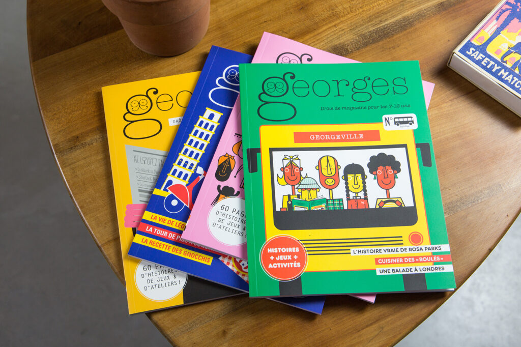 Eloigner les enfants des écrans en créant des magazines différents, intelligents, amusants, soignés à tous niveaux et SANS le côté gnan-gna habituel des magazines pour enfants. Chez Maison Georges, nous avons décidé de créer des magazines qui vous plairons autant qu’aux enfants.